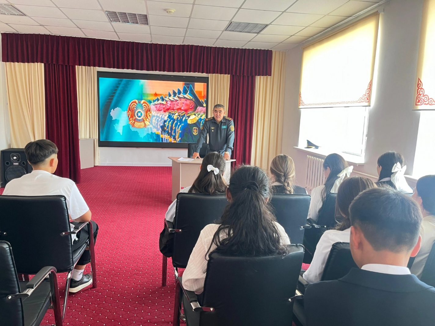Әскери қызмет – кез-келген ер жігіттің өміріндегі маңызды кезең. Елді, жерді қорғау жолында атқаратын әскери қызмет әрбір азаматтың қасиетті борышы. Патриоттық тәрбие беру осы мектеп қабырғасынан бастау алатыны белгілі. Соған орай бүгін мектебімізге ауданымыздың ҚІЖБ басшысы подполковник Қанат Оралбайұлы келіп, 10-11 сынып оқушыларымен кездесу ұйымдастырылды. Кездесу барысында оқушыларды жаңа оқу жылының басталуымен құттықтап, әскери оқу орындары мен әскери қызметшінің еңбек жолы жайлы әңгіме жүргізілді. Оқушылар Қанат Оралбайұлынан әскери қызмет, азаматтық парыз жайлы, Отан алдындағы әскери борышты өтеудің маңыздылығы төнірегіндегі сұрақтарға жауап алды.